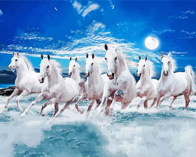 Aesthetic Seven White Horse Art Diamond Painting