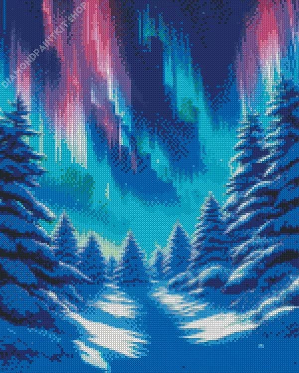 Presenting our exquisite Borealis Trees In Snow Diamond Painting, perfect for those eager to unleash their creativity and produce a stunning masterpiece that glimmers like genuine diamonds. Our diamond painting kits incorporate all the essentials for a successful start: superior-quality diamonds, a pre-designed canvas, and all the required tools. With the aid of our diamond paint kits, you can transform your imaginative ideas into reality and shape an artwork that will elicit admiration from friends and family alike. Each diamond is meticulously crafted to ensure its brilliant radiance and simple application to the canvas. The pre-printed design on the canvas guarantees a swift commencement of your project, eliminating concerns about sketching the design.