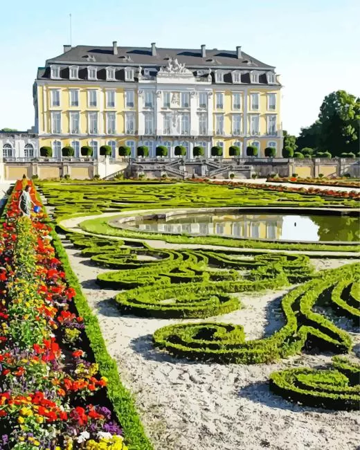 Presenting our exquisite Bruhl Castle Diamond Painting, perfect for those eager to unleash their creativity and produce a stunning masterpiece that glimmers like genuine diamonds. Our diamond painting kits incorporate all the essentials for a successful start: superior-quality diamonds, a pre-designed canvas, and all the required tools. With the aid of our diamond paint kits, you can transform your imaginative ideas into reality and shape an artwork that will elicit admiration from friends and family alike. Each diamond is meticulously crafted to ensure its brilliant radiance and simple application to the canvas. The pre-printed design on the canvas guarantees a swift commencement of your project, eliminating concerns about sketching the design.