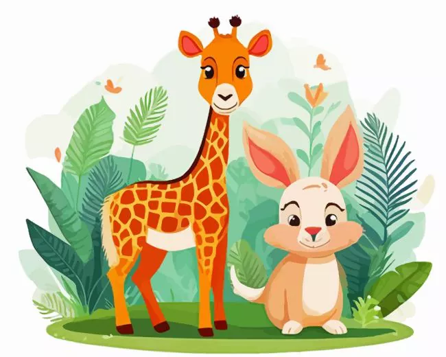 Presenting our exquisite Bunny And Giraffe Diamond Painting, perfect for those eager to unleash their creativity and produce a stunning masterpiece that glimmers like genuine diamonds. Our diamond painting kits incorporate all the essentials for a successful start: superior-quality diamonds, a pre-designed canvas, and all the required tools. With the aid of our diamond paint kits, you can transform your imaginative ideas into reality and shape an artwork that will elicit admiration from friends and family alike. Each diamond is meticulously crafted to ensure its brilliant radiance and simple application to the canvas. The pre-printed design on the canvas guarantees a swift commencement of your project, eliminating concerns about sketching the design.
