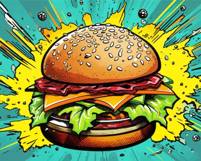 Presenting our exquisite Burger Pop Art Diamond Painting, perfect for those eager to unleash their creativity and produce a stunning masterpiece that glimmers like genuine diamonds. Our diamond painting kits incorporate all the essentials for a successful start: superior-quality diamonds, a pre-designed canvas, and all the required tools. With the aid of our diamond paint kits, you can transform your imaginative ideas into reality and shape an artwork that will elicit admiration from friends and family alike. Each diamond is meticulously crafted to ensure its brilliant radiance and simple application to the canvas. The pre-printed design on the canvas guarantees a swift commencement of your project, eliminating concerns about sketching the design.