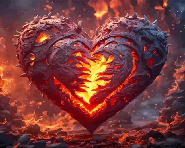 Presenting our exquisite Burning Heart Diamond Painting, perfect for those eager to unleash their creativity and produce a stunning masterpiece that glimmers like genuine diamonds. Our diamond painting kits incorporate all the essentials for a successful start: superior-quality diamonds, a pre-designed canvas, and all the required tools. With the aid of our diamond paint kits, you can transform your imaginative ideas into reality and shape an artwork that will elicit admiration from friends and family alike. Each diamond is meticulously crafted to ensure its brilliant radiance and simple application to the canvas. The pre-printed design on the canvas guarantees a swift commencement of your project, eliminating concerns about sketching the design.