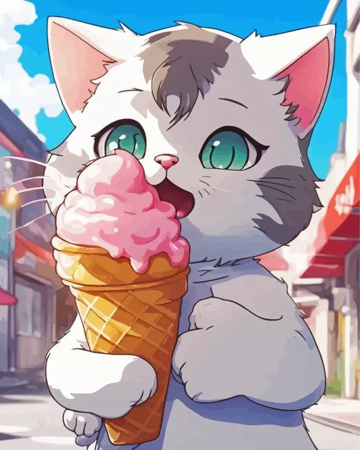 Cartoon Cat Eating Ice Cream Diamond Painting