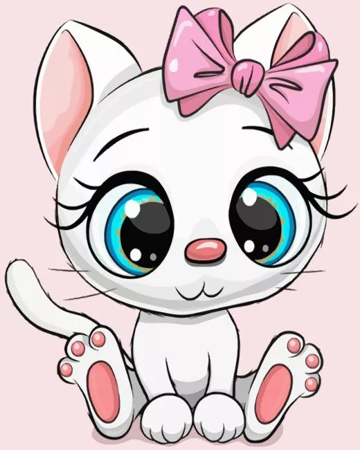 Cartoon Cat Wearing Pink Bow Diamond Painting