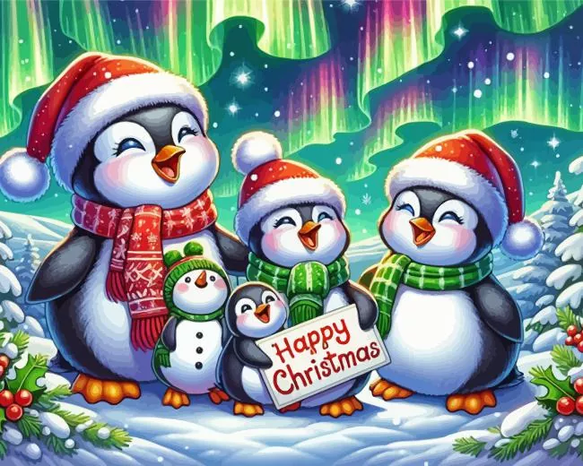 Cartoon Christmas Penguins Family Diamond Painting