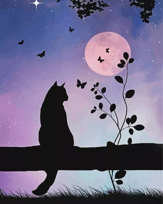 Cat And Butterflies Silhouette Diamond Painting