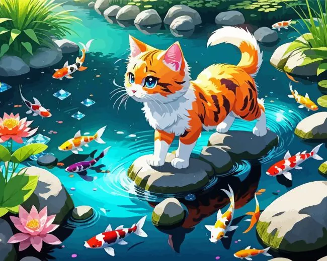 Cat And Koi Fish Diamond Painting