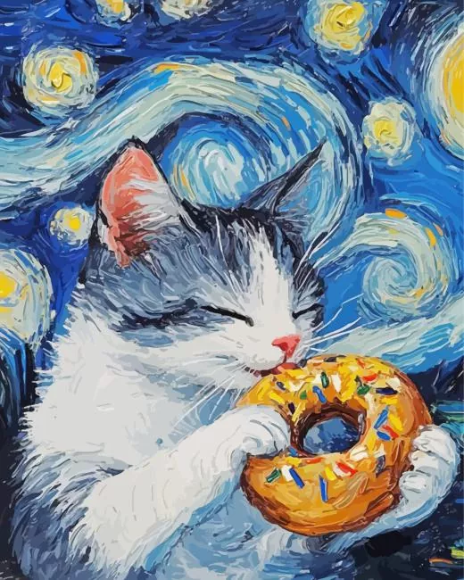 Cat Eating Donut Diamond Painting