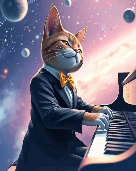 Cat Playing Piano In Space Diamond Painting