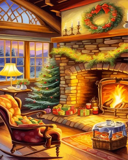 Chair By Fireplace Diamond Painting