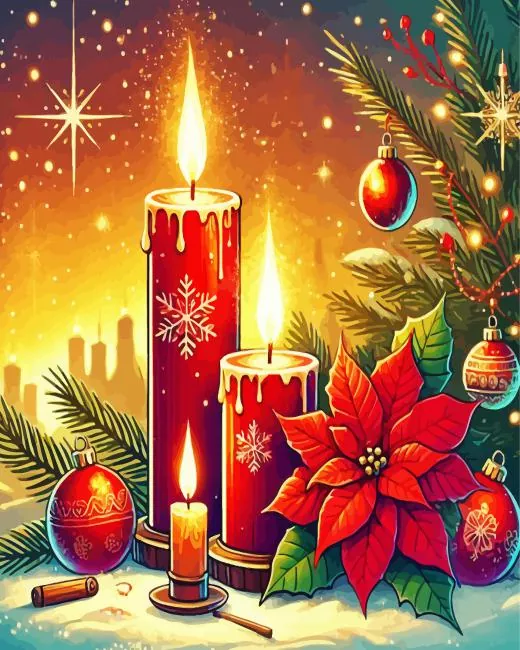 Christmas Red Candles Diamond Painting
