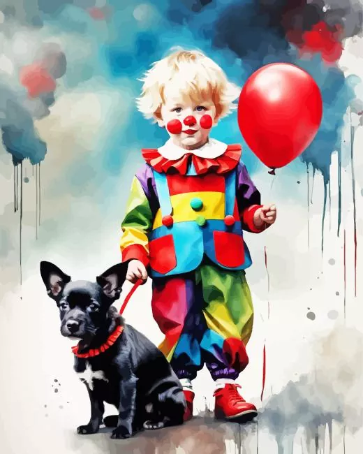 Clown Boy And His Dog Diamond Painting