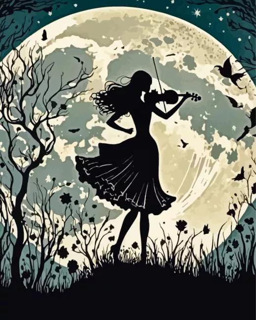 Cool Girl Playing Violin Silhouette Diamond Painting