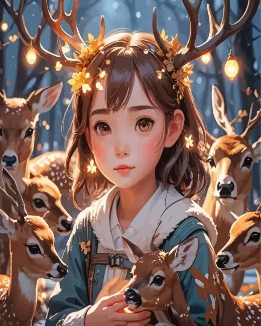Cute Little Girl With Deers Diamond Painting
