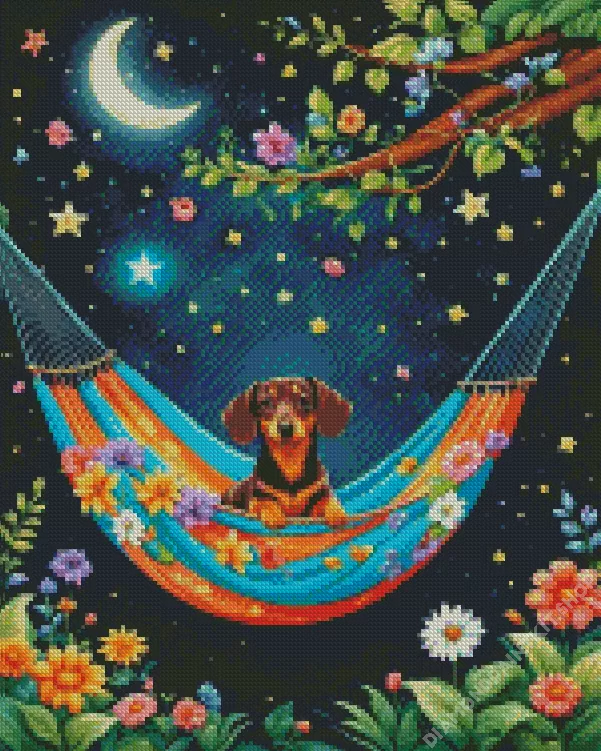 Presenting our exquisite Dog In A Hammock Diamond Painting, perfect for those eager to unleash their creativity and produce a stunning masterpiece that glimmers like genuine diamonds. Our diamond painting kits incorporate all the essentials for a successful start: superior-quality diamonds, a pre-designed canvas, and all the required tools. With the aid of our diamond paint kits, you can transform your imaginative ideas into reality and shape an artwork that will elicit admiration from friends and family alike. Each diamond is meticulously crafted to ensure its brilliant radiance and simple application to the canvas. The pre-printed design on the canvas guarantees a swift commencement of your project, eliminating concerns about sketching the design.