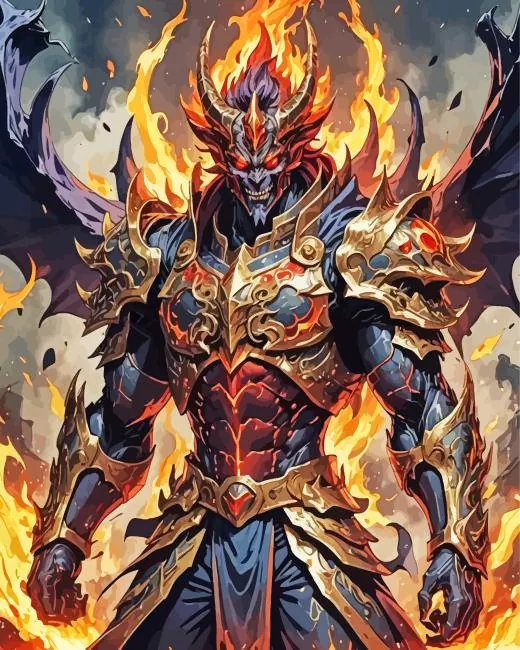 Presenting our exquisite Evil Fire Prince Diamond Painting, perfect for those eager to unleash their creativity and produce a stunning masterpiece that glimmers like genuine diamonds. Our diamond painting kits incorporate all the essentials for a successful start: superior-quality diamonds, a pre-designed canvas, and all the required tools. With the aid of our diamond paint kits, you can transform your imaginative ideas into reality and shape an artwork that will elicit admiration from friends and family alike. Each diamond is meticulously crafted to ensure its brilliant radiance and simple application to the canvas. The pre-printed design on the canvas guarantees a swift commencement of your project, eliminating concerns about sketching the design.