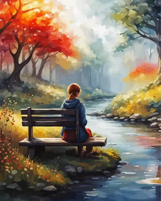 Girl Sitting Alone Diamond Painting