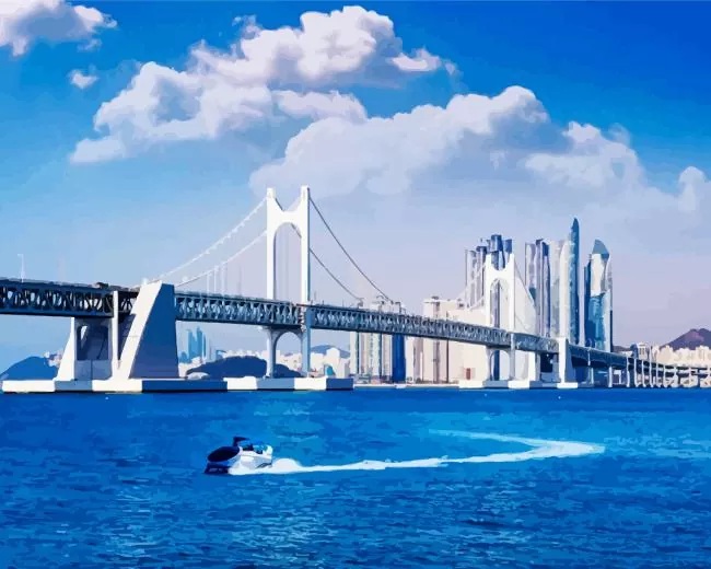 Presenting our exquisite Gwangan Bridge Busan Diamond Painting, perfect for those eager to unleash their creativity and produce a stunning masterpiece that glimmers like genuine diamonds. Our diamond painting kits incorporate all the essentials for a successful start: superior-quality diamonds, a pre-designed canvas, and all the required tools. With the aid of our diamond paint kits, you can transform your imaginative ideas into reality and shape an artwork that will elicit admiration from friends and family alike. Each diamond is meticulously crafted to ensure its brilliant radiance and simple application to the canvas. The pre-printed design on the canvas guarantees a swift commencement of your project, eliminating concerns about sketching the design.