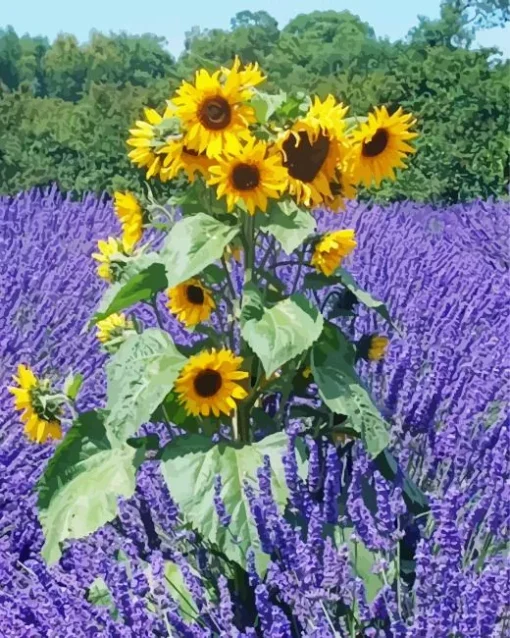 Presenting our exquisite Lavenders And Sunflowers Diamond Painting, perfect for those eager to unleash their creativity and produce a stunning masterpiece that glimmers like genuine diamonds. Our diamond painting kits incorporate all the essentials for a successful start: superior-quality diamonds, a pre-designed canvas, and all the required tools. With the aid of our diamond paint kits, you can transform your imaginative ideas into reality and shape an artwork that will elicit admiration from friends and family alike. Each diamond is meticulously crafted to ensure its brilliant radiance and simple application to the canvas. The pre-printed design on the canvas guarantees a swift commencement of your project, eliminating concerns about sketching the design.