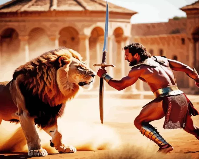Presenting our exquisite Lion And Gladiator Diamond Painting, perfect for those eager to unleash their creativity and produce a stunning masterpiece that glimmers like genuine diamonds. Our diamond painting kits incorporate all the essentials for a successful start: superior-quality diamonds, a pre-designed canvas, and all the required tools. With the aid of our diamond paint kits, you can transform your imaginative ideas into reality and shape an artwork that will elicit admiration from friends and family alike. Each diamond is meticulously crafted to ensure its brilliant radiance and simple application to the canvas. The pre-printed design on the canvas guarantees a swift commencement of your project, eliminating concerns about sketching the design.
