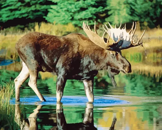 Moose In River Diamond Painting