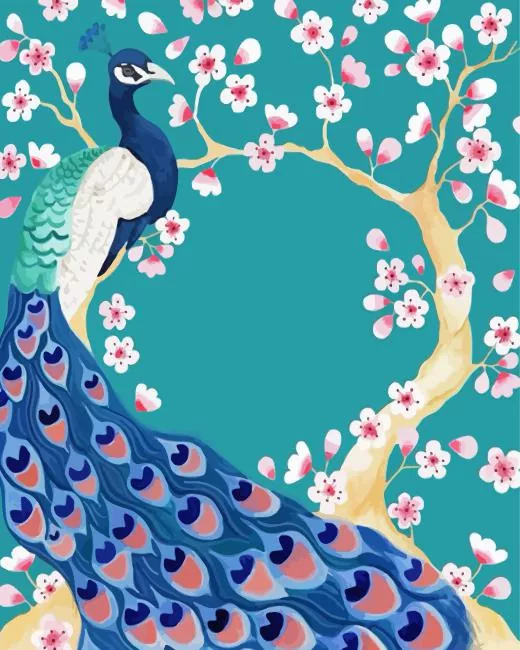 Peacock And Cherry Blossom Diamond Painting