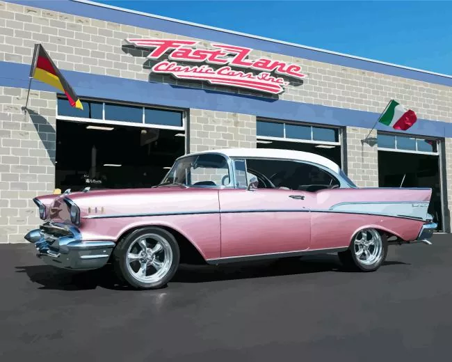 Presenting our exquisite Pink Chevrolet Buick Bel Air Diamond Painting, perfect for those eager to unleash their creativity and produce a stunning masterpiece that glimmers like genuine diamonds. Our diamond painting kits incorporate all the essentials for a successful start: superior-quality diamonds, a pre-designed canvas, and all the required tools. With the aid of our diamond paint kits, you can transform your imaginative ideas into reality and shape an artwork that will elicit admiration from friends and family alike. Each diamond is meticulously crafted to ensure its brilliant radiance and simple application to the canvas. The pre-printed design on the canvas guarantees a swift commencement of your project, eliminating concerns about sketching the design.