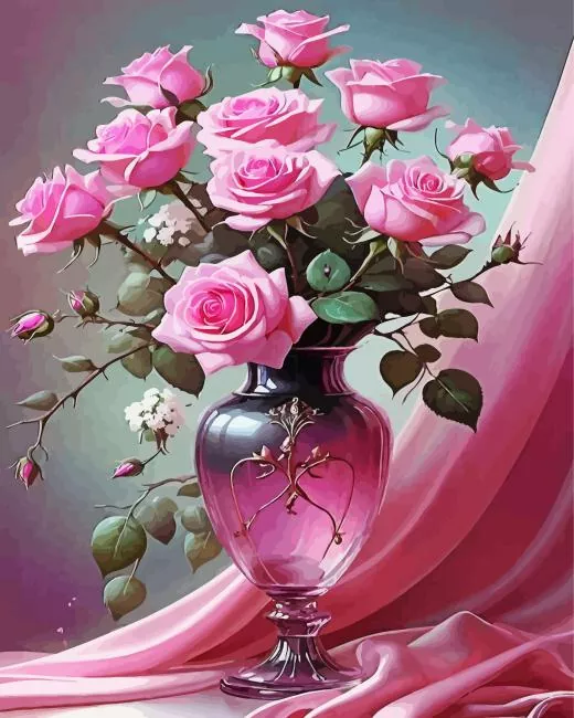 Pink Flowers Bouquet In A Vase Diamond Painting