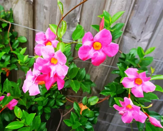 Presenting our exquisite Pink Mandevilla Flowers Diamond Painting, perfect for those eager to unleash their creativity and produce a stunning masterpiece that glimmers like genuine diamonds. Our diamond painting kits incorporate all the essentials for a successful start: superior-quality diamonds, a pre-designed canvas, and all the required tools. With the aid of our diamond paint kits, you can transform your imaginative ideas into reality and shape an artwork that will elicit admiration from friends and family alike. Each diamond is meticulously crafted to ensure its brilliant radiance and simple application to the canvas. The pre-printed design on the canvas guarantees a swift commencement of your project, eliminating concerns about sketching the design.