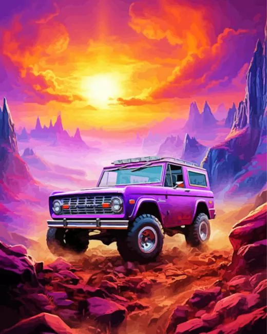 Presenting our exquisite Purple Ford Bronco At Sunset Diamond Painting, perfect for those eager to unleash their creativity and produce a stunning masterpiece that glimmers like genuine diamonds. Our diamond painting kits incorporate all the essentials for a successful start: superior-quality diamonds, a pre-designed canvas, and all the required tools. With the aid of our diamond paint kits, you can transform your imaginative ideas into reality and shape an artwork that will elicit admiration from friends and family alike. Each diamond is meticulously crafted to ensure its brilliant radiance and simple application to the canvas. The pre-printed design on the canvas guarantees a swift commencement of your project, eliminating concerns about sketching the design.