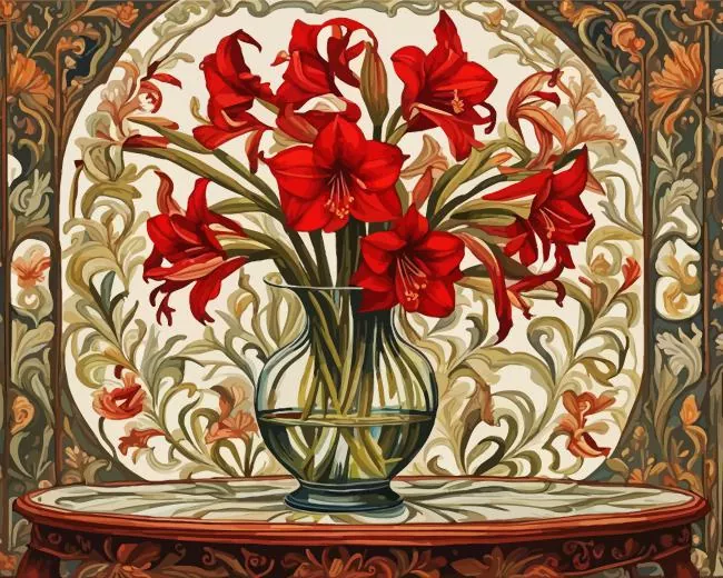 Red Glass Amaryllis Vase Diamond Painting