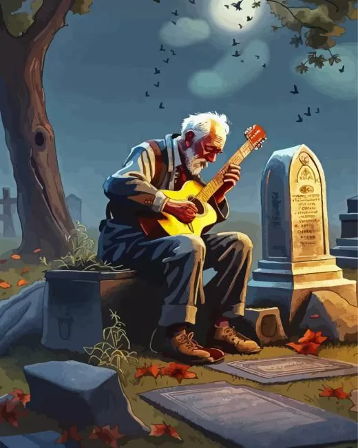 Sad Man Playing Guitar Diamond Painting