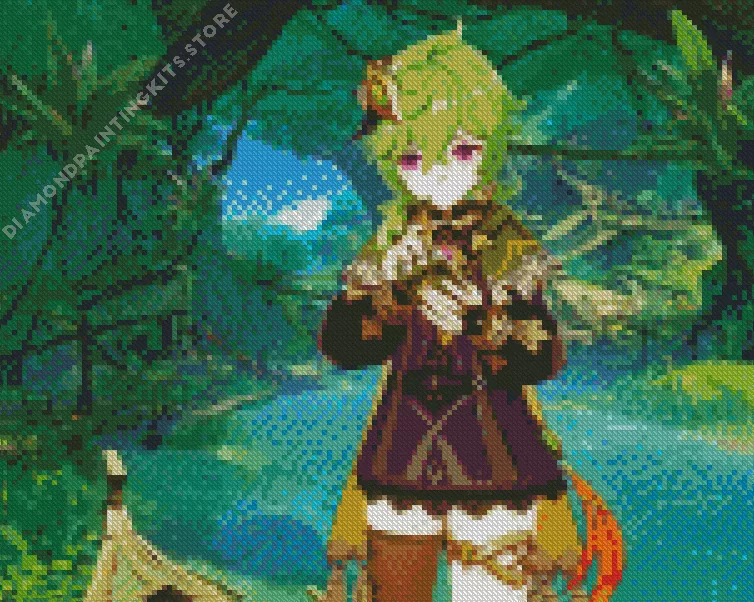 Presenting our exquisite Tighnari Genshin Impact Character Diamond Painting, perfect for those eager to unleash their creativity and produce a stunning masterpiece that glimmers like genuine diamonds. Our diamond painting kits incorporate all the essentials for a successful start: superior-quality diamonds, a pre-designed canvas, and all the required tools. With the aid of our diamond paint kits, you can transform your imaginative ideas into reality and shape an artwork that will elicit admiration from friends and family alike. Each diamond is meticulously crafted to ensure its brilliant radiance and simple application to the canvas. The pre-printed design on the canvas guarantees a swift commencement of your project, eliminating concerns about sketching the design.