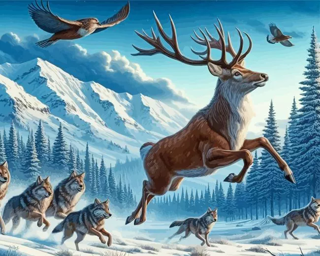 Wolves Chasing Deer Diamond Painting